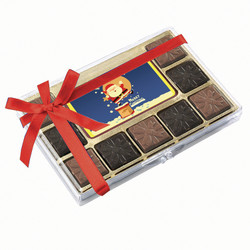 100% Belgian Chocolate! Delectable 9 ganache filled Belgian chocolates, packed in a clear gift box and a custom printed chocolate center piece. The luxurious milk and dark chocolates are filled with rich caramel and mint ganache flavors making this box...
