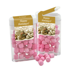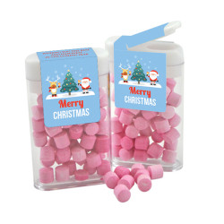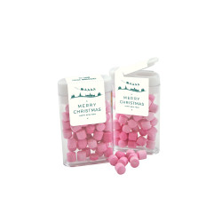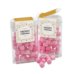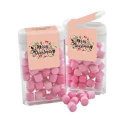 A clear flip top dispensers filled with your choice of confectionery and branded with a custom printed sticker. FILLINGS AVAILABLE: Mini Musks Mini Mints M&M's Jelly Beans DIMENSIONS - 64m X 70mmWEIGHT – 60 Grams...